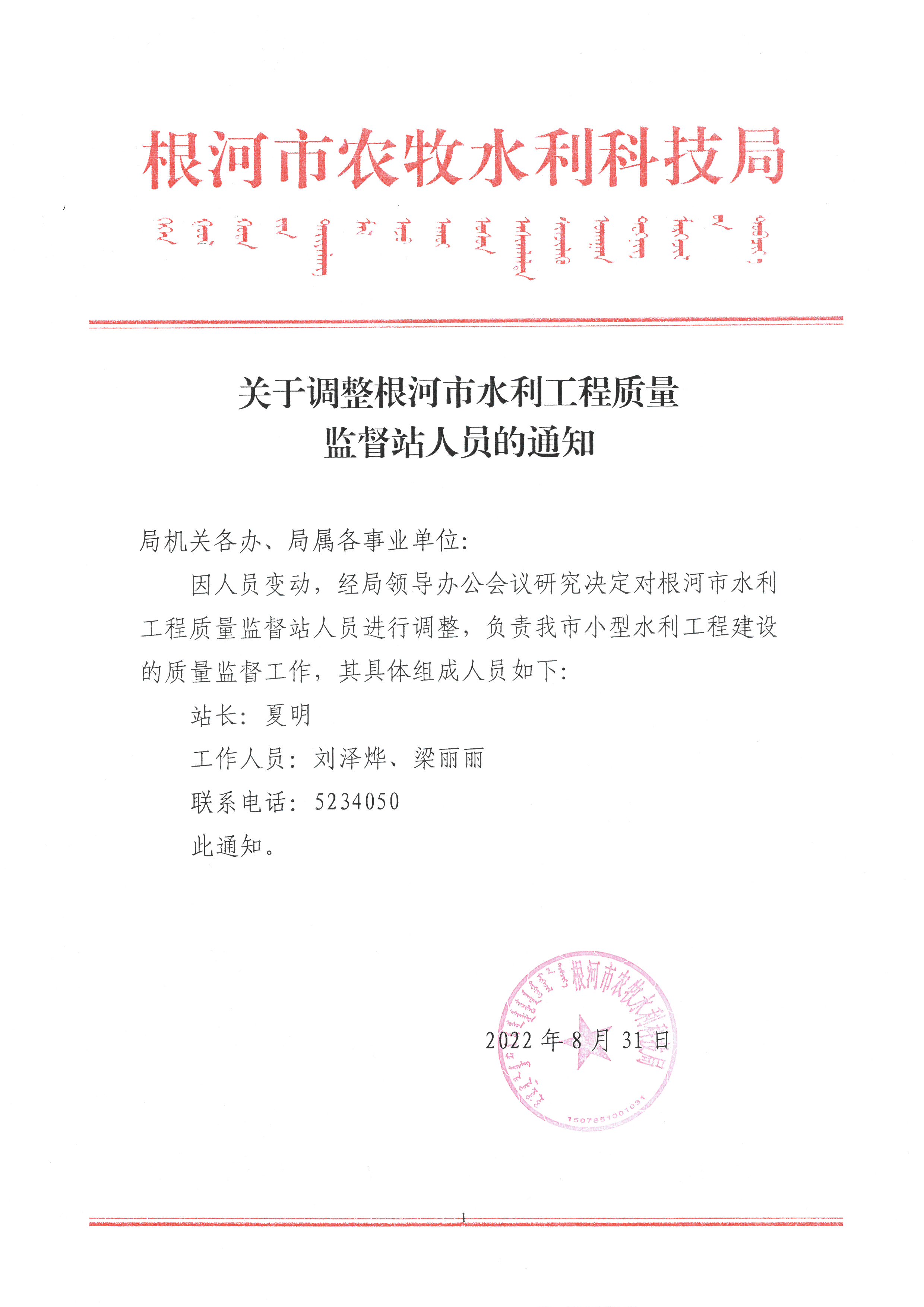 关于调整UedBet体育水利工程质量监督站人员的通知